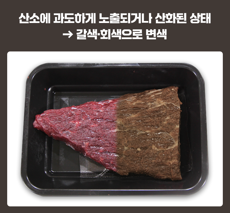 ✅ 공기 접촉 시간이 길수록 고기 변색은 빠르게 진행됩니다.