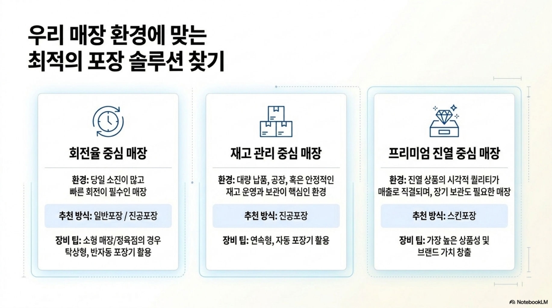 ✔ 빠른 회전 매장 → 일반포장 / 진공포장