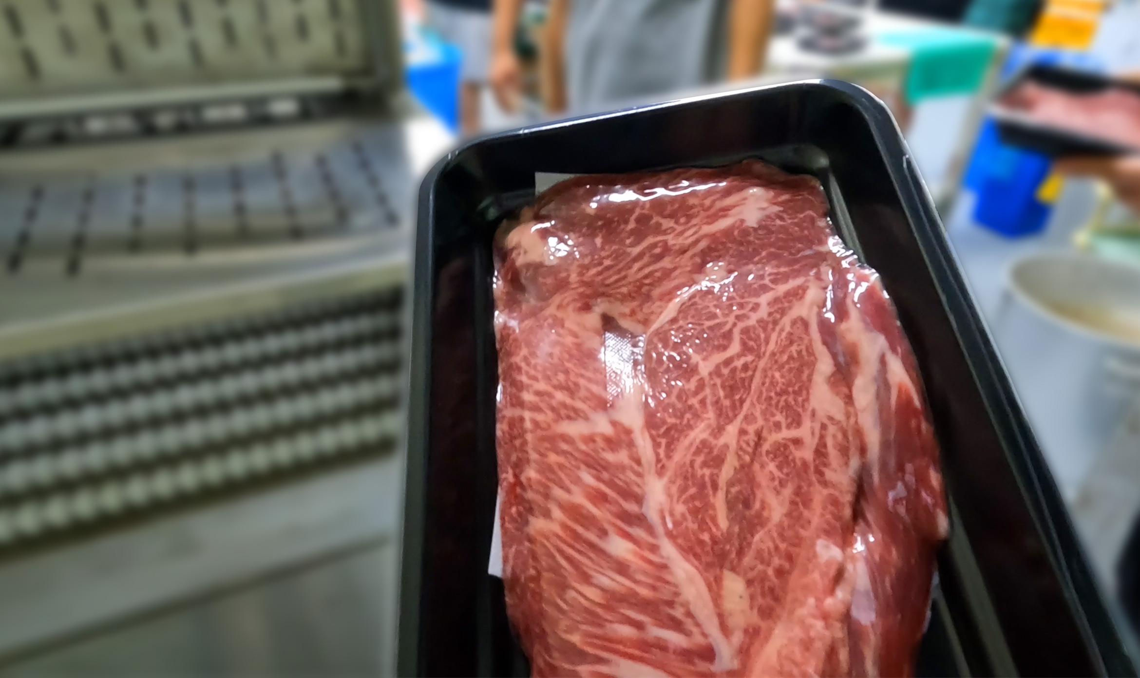 스킨 포장은 고기의 색감과 형태를 그대로 살리면서도 공기 유입을 막아줍니다.