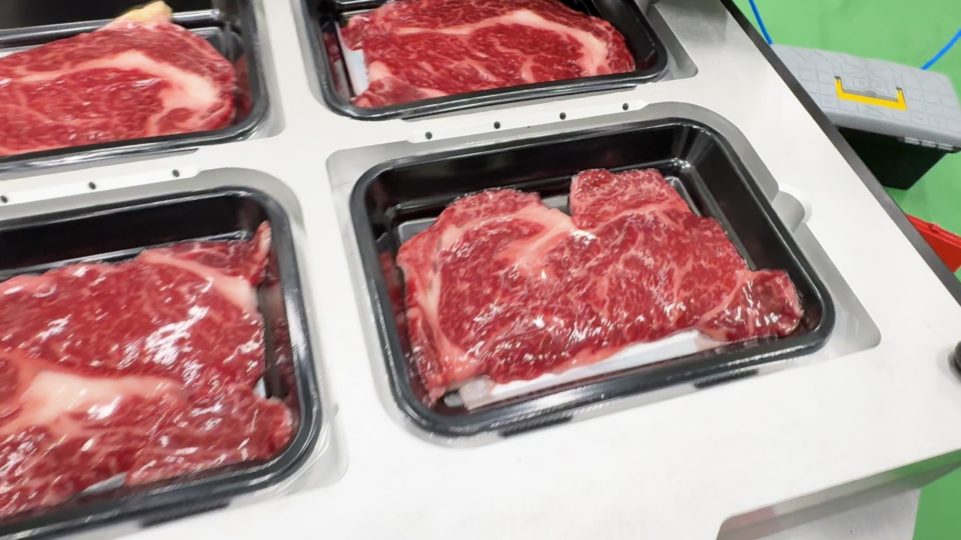 필름이 고기에 밀착되어 마블링과 색감이 또렷하게 표현되며,