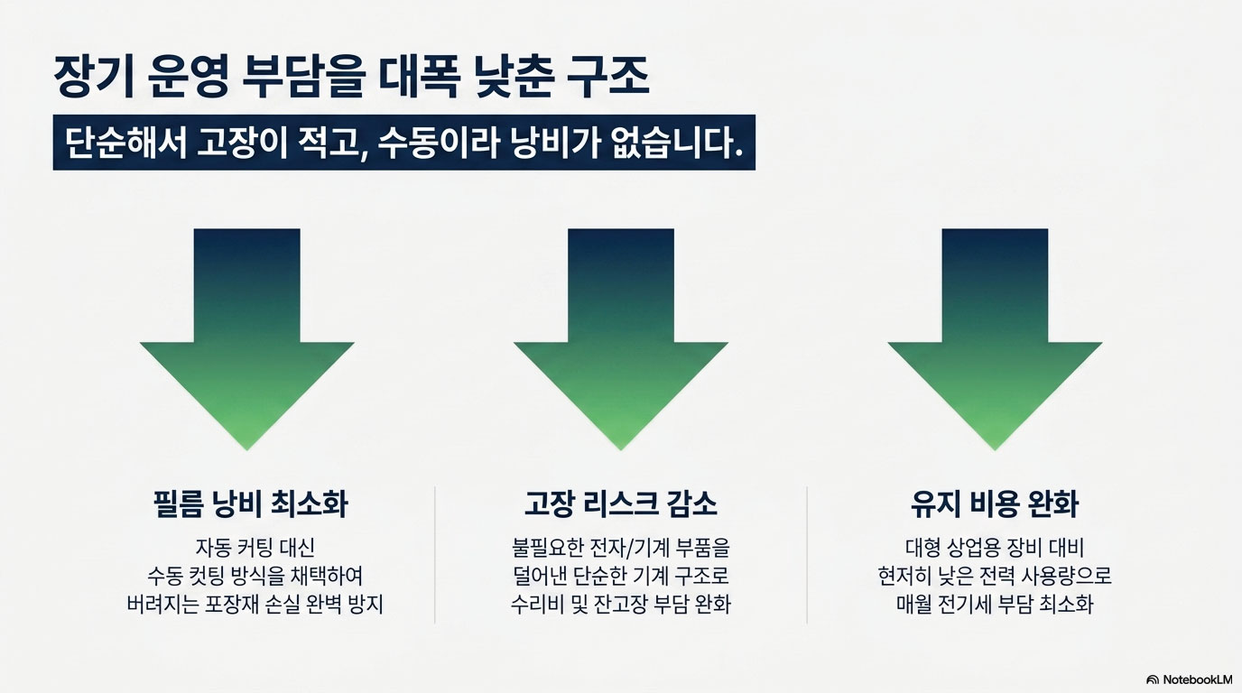 ✔ 필름 수동 컷팅 → 낭비 최소화