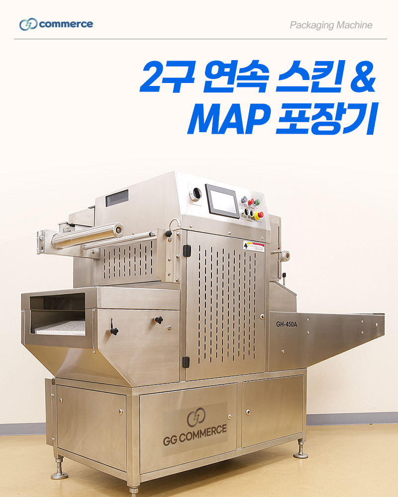 식품 포장 효율 극대화 솔루션 2구 연속 스킨 & MAP 포장기 GH-450A 본문