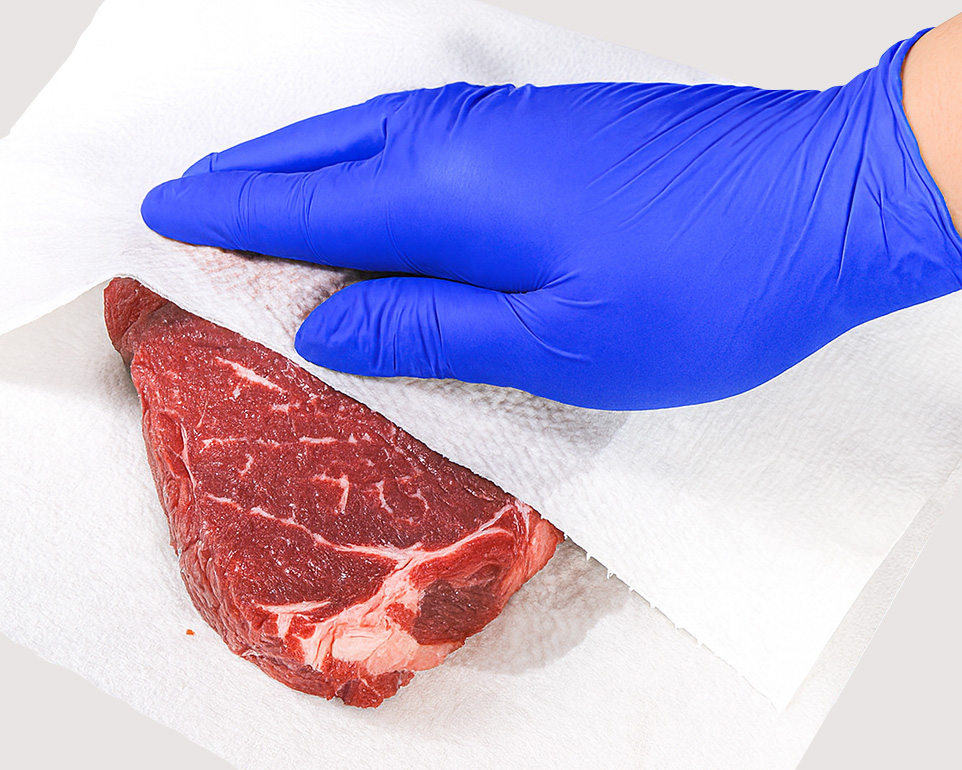 - 미트페이퍼로 가볍게 눌러 수분 흡수시키기