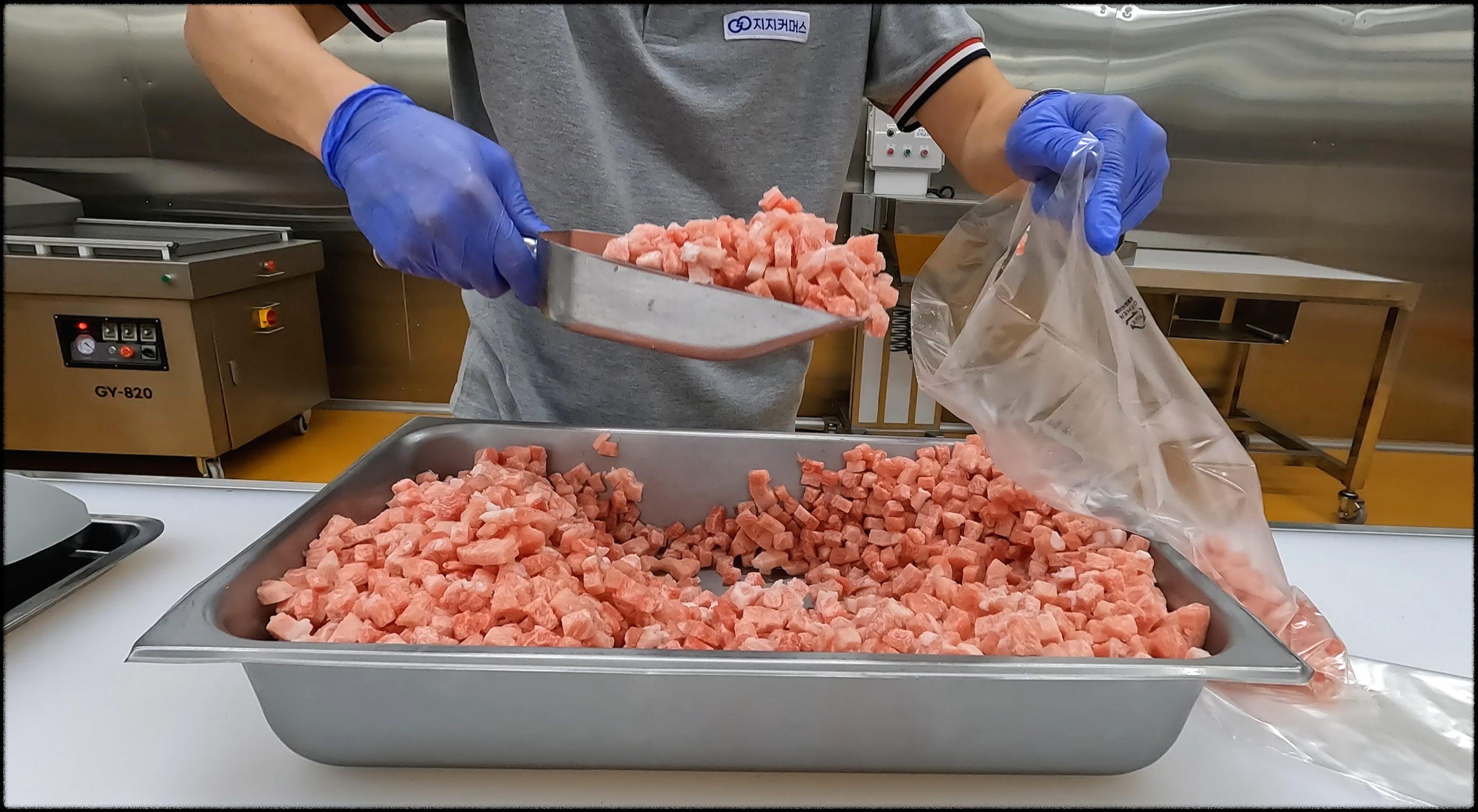 큐브 커팅 고기, 대량 육류 가공의 필수 장비 더블 챔버 진공포장기로 신선도 UP!! 본문